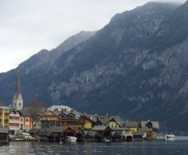 Folytassuk innen az utunkat dél felé, a 145-ös úton, míg el nem érjük az utolsó alagút után ezt a festői csodát.Hallstadt a Hallstädter- See partján található. Parkolása tökéletesen megoldott. Népszerű üdülőhelynek számít, így a helyiek mindenre gondoltak. A városka a szikla lábához, egymásra épült házak csodálatos sorából áll.Jellemző vendég erre a távol-keleti turista. Persze láttunk jó pár magyar rendszámú autót is, de tényleg hihetetlen volt tapasztalni, hogy ennyire messze Ázsiától, Ausztriában a feliratok kínai nyelven is szerepelnek, illetve, hogy a helyi népviseletben is egy onnan származó hölgyet ábrázoltak.
