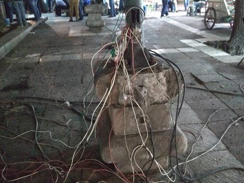 Még egy utolsó élmény. Egy tök jó fej taxis elhozott a szállodánkba, ami tényleg a belvárosban van. Első élményként lesétáltunk az utcára és a közeli boltba - elalvás előtt. Hát ez valami nagyon durva. A Hilton szállóval szemben egy színes, szagos/illatos vásári bazárszerű képződmény van, ahol tömegek salsáznak, sütik a kukoricákat, árulják az édességeket - szóval valami brutál feeling van... Az elektromos bekötés a következőképpen néz ki: