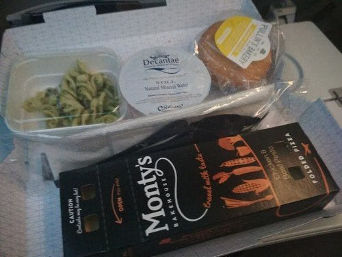 A landolás előtt még másfél órával a sztyuvik még dobnak egy kis vacsit, már csak a fásultság oldása miatt is. Valami pizza nevezetű, de inkább tortilla jellegű csirkés cuccot kapunk, mellé egy pesztós hideg tésztasaláta érkezik, vagyis tényleg egy jó kis uzsonna összejött ebből. Azért ezek a srácok nem semmik, 12 órát úgy lenyomtak, hogy még a végén is udvariasak és jó felek voltak. Ja azt már el majdnem el is felejtettem, hogy New York előtt mindenki kapott egy-egy jégkrémet, ami őszintén nagyon jól esett.