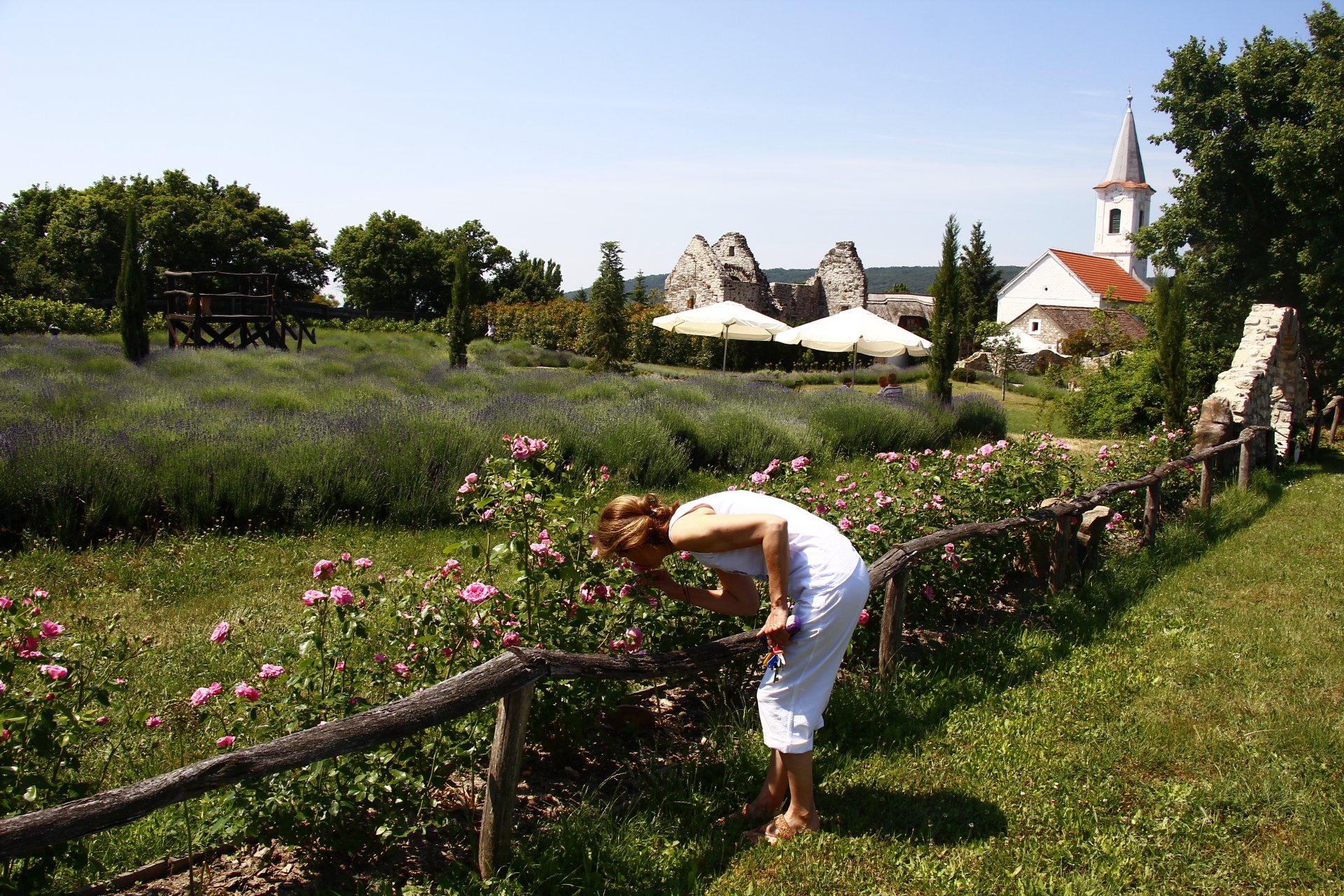 Azt gondolom, hatalmas szerencséje volt, hogy ezt a gyönyörű területet megvehette, hiszen ez nem csupán egy darab föld, valahol a Balaton fölött, hanem valóban mesés elhelyezkedésű birtok. A több, mint ezer éves rom, a dombocskán megbúvó kis templom, és a birtok szélén kezdődő, hirtelen induló zöld völgy különösen megfoghatatlanná teszi ennek a tájnak a szépségét. Nem jártam itt a Levendárium megalapítása előtt, de akkor is szép lehetett, most Ildikóék munkája alapján, liláskék levendulákkal és csodás rózsákkal, termő meggyfákkal maga a Paradicsom. Ahogy végigsétálsz a birtokon, eluralkodik rajtad a nyugalom és csak ülsz a nagy meggyfa alatt a padon, és csodálod a természet adta tájat és a szorgos kezek munkáját, aki ebből a tájból műremeket alkotott.
