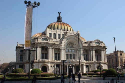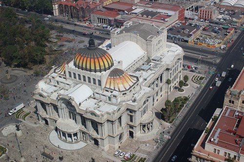 A Torre Latino-val szinte szemben van a Palacio de Bellas Artes ( Szépművészeti palota ), ahova ingyen bejutottunk, benn azonban épp valami konferencia zajlott, így csak a hall részt láthattuk. Ettől függetlenül szép és lenyűgöző épület, nappal és este is nyüzsgő környékkel.