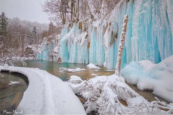 Mesebeli látvány fogadja a Horvátországba látogatókat a Plitvicei tavak és vízesések, amelyek a nagy hidegek miatt egybefüggő jégvilággá fagytak meg.